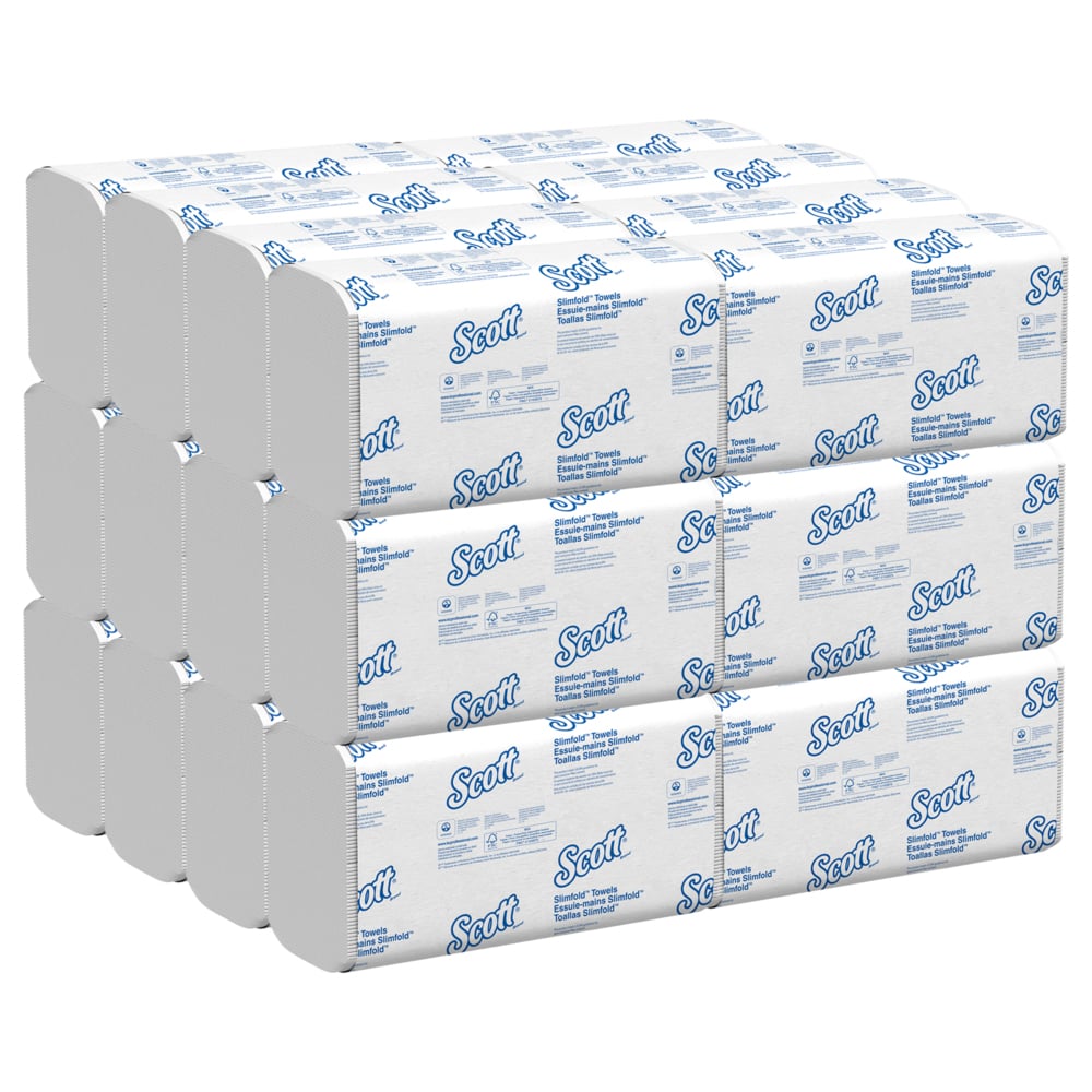 • 90 Sheets/Pack, 24 Scott® Pro™ Slimfold™ Paper Towel Packs/Case, 2,160 Sheets/Case; with Fast-Drying Absorbency Pockets™; for compatible Kimberly-Clark Professional™ Dispensers; White;