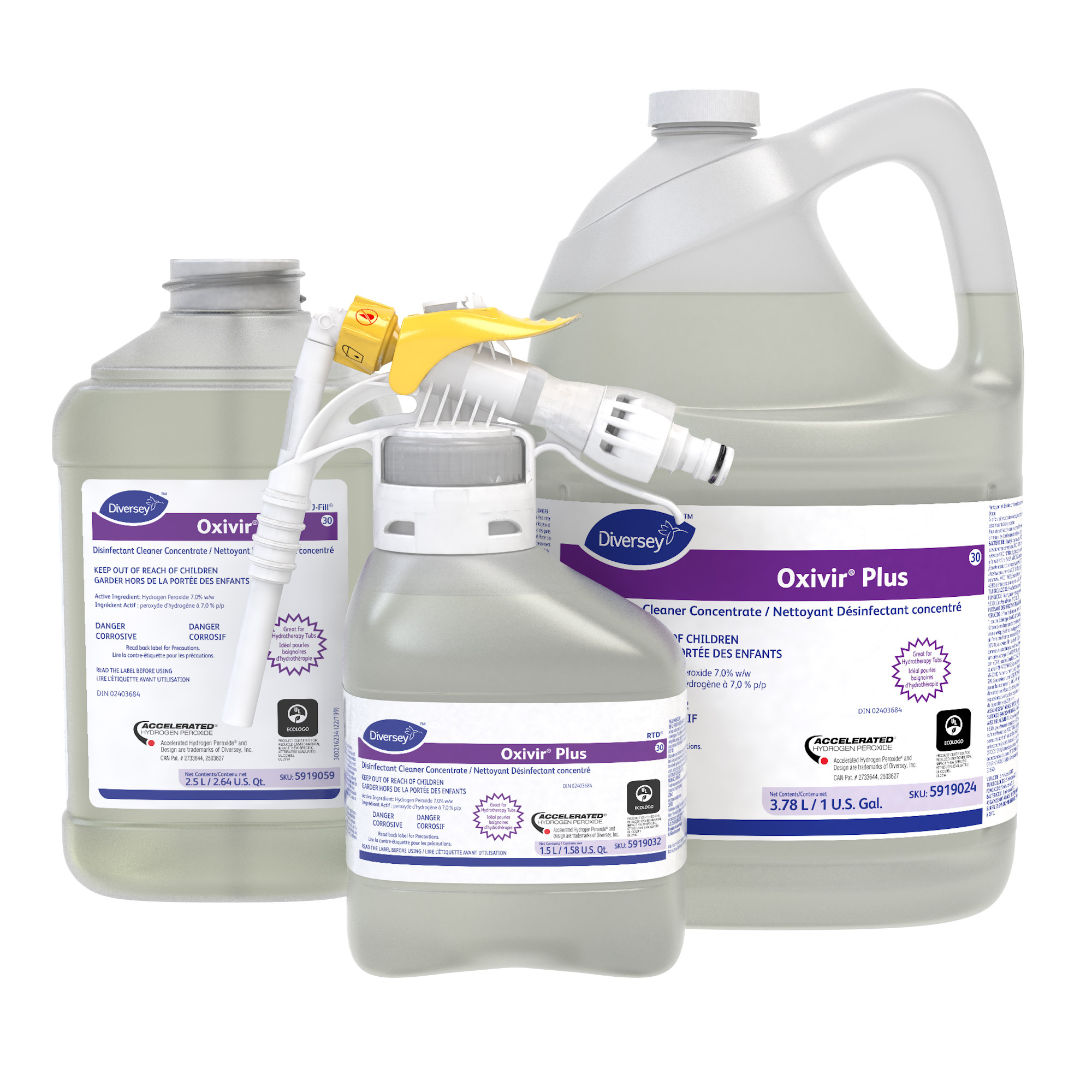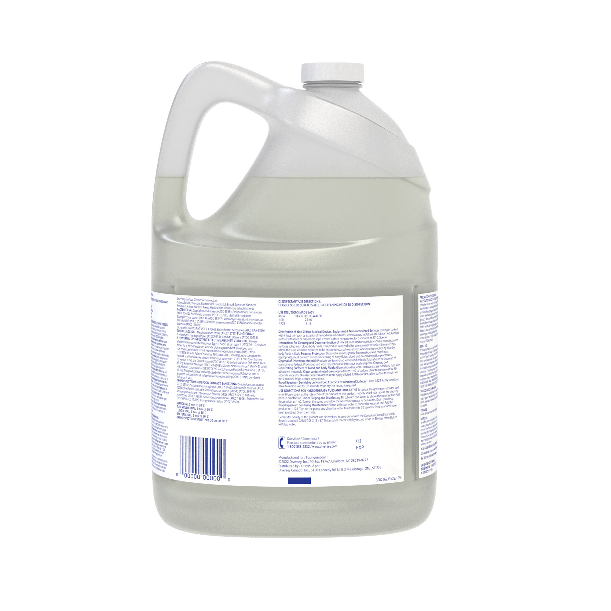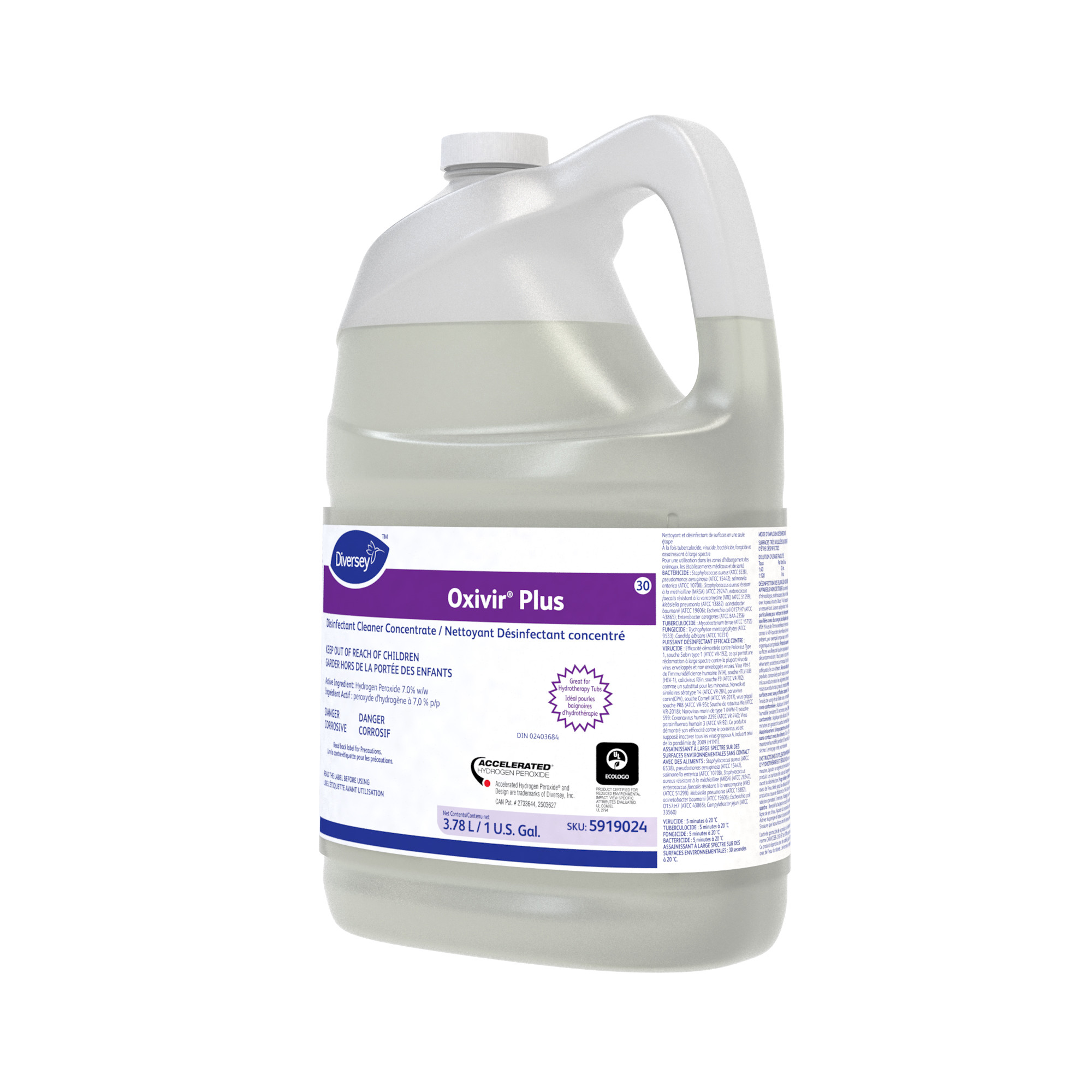 A one-step disinfectant cleaner based on proprietary Accelerated Hydrogen Peroxide (AHP®) technology to deliver fast, effective cleaning performance. At 1:40 dilution, disinfects in five minutes. Virucide, bactericide, fungicide, mildewcide and non-food contact sanitizer (1:128 dilution). Kills MRSA, Norovirus and Canine parvovirus. Concentrate delivers economical and environmentally safe performance. Meets bloodborne pathogen standards for decontaminating blood and body fluids. Colorless.