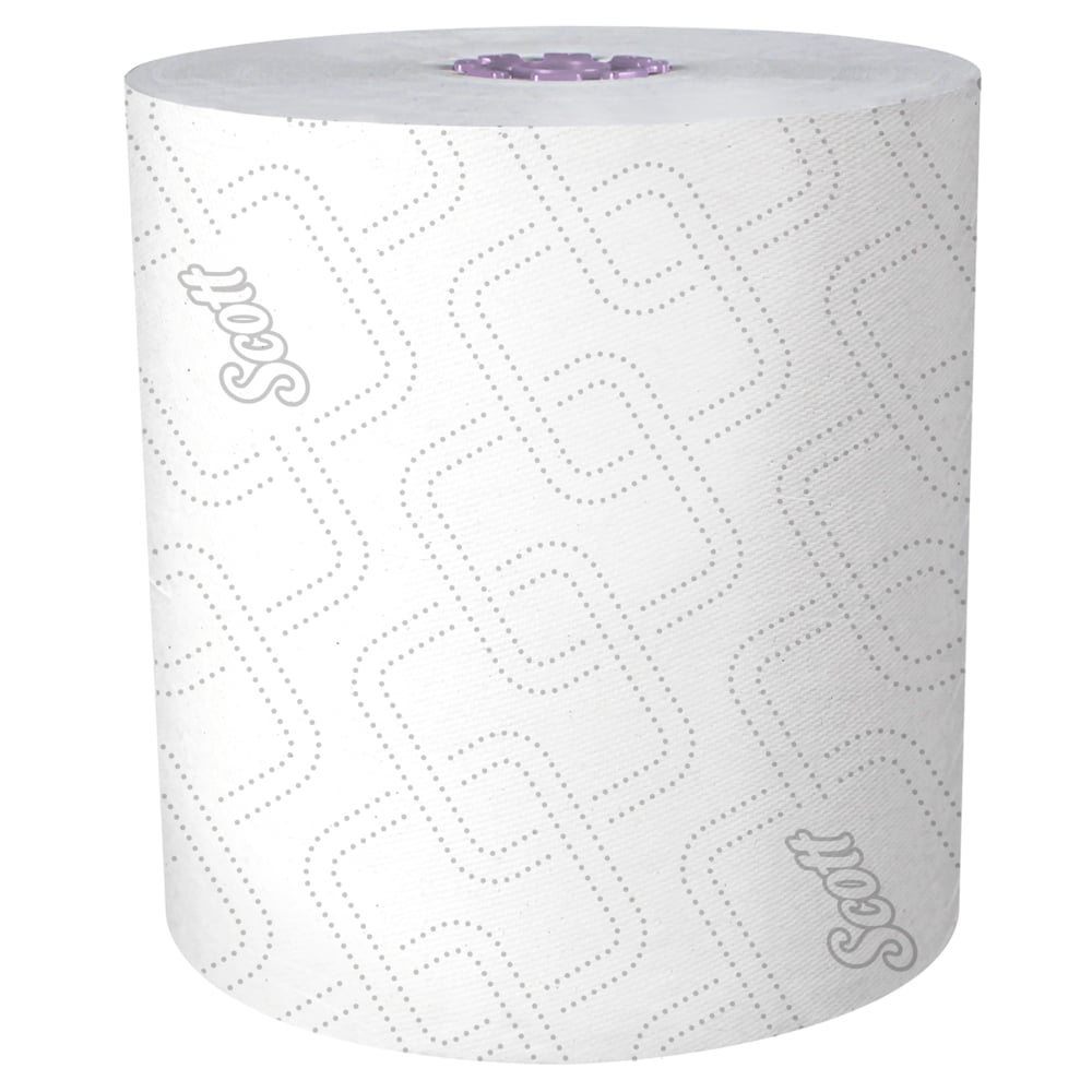 • 950’/Roll, 6 Scott® Essential High-Capacity Hard Roll Towel Rolls/Case; 5,700’/Case; with Elevated Design and Absorbency Pockets™; for Purple Core Dispensers; White; Unperforated